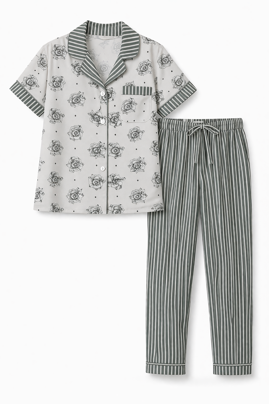 Dowry Flz 429 pijama takımı, hafif ve nefes alabilen kumaşı sayesinde gece boyu ferah bir kullanım sunar. Kısa kollu üst ve rahat kesimli alt parça ile özellikle sıcak havalar için idealdir. Yeşil rengi ile sade ama enerjik bir görünüm sağlar.