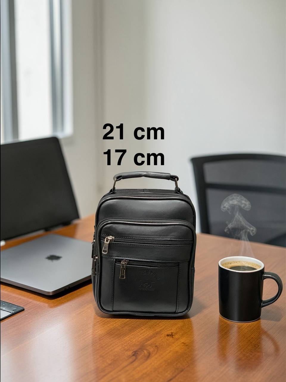 Hakiki deri erkek omuz çantası, 21×17 cm ölçüleri ile ne çok büyük ne de küçük — tam kararında bir kullanım sunar. Günlük hayat ve iş kullanımı için ideal bir boyuttadır.