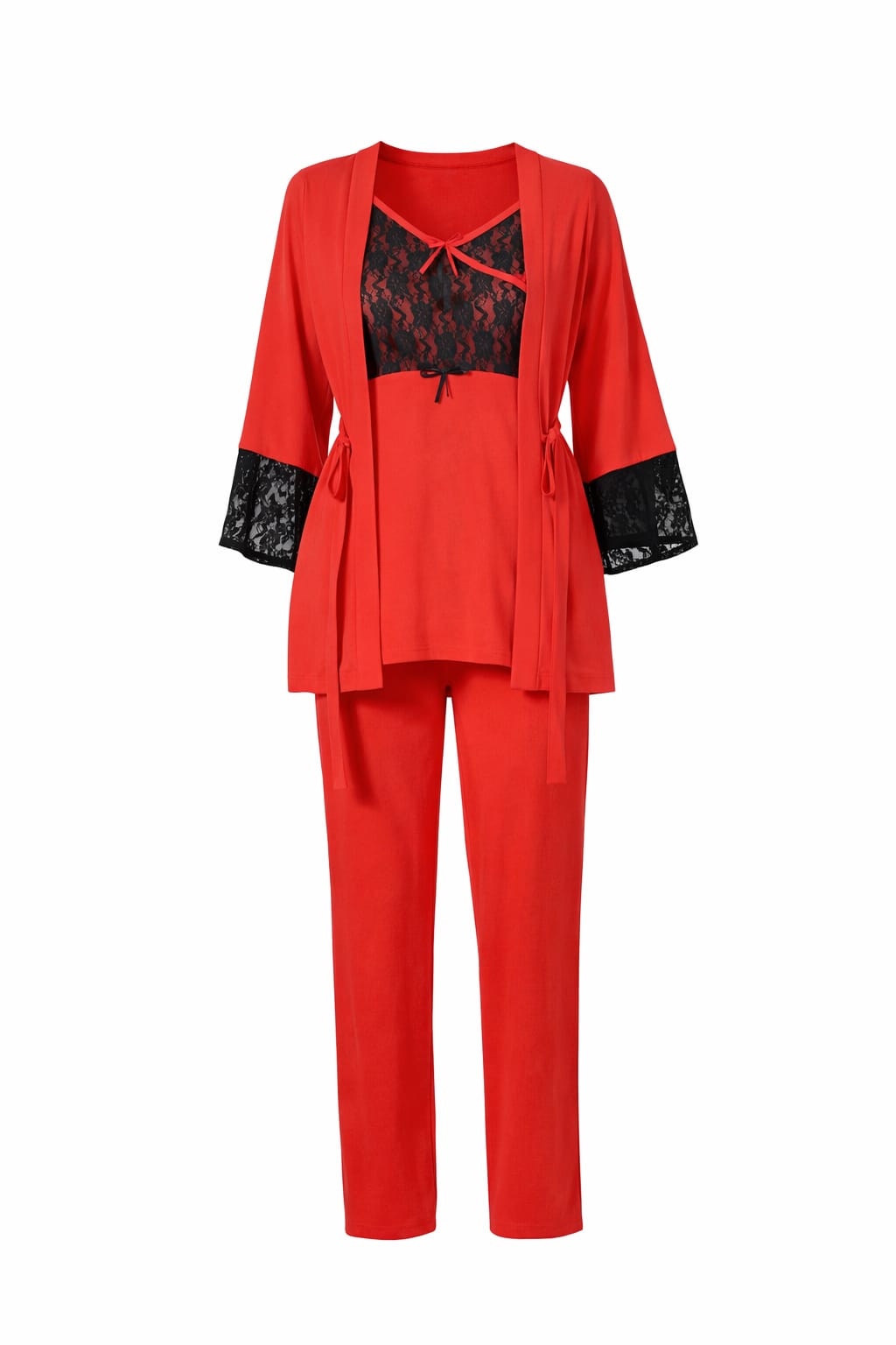 ✔ 3 parçalı set (gecelik + pijama + sabahlık)