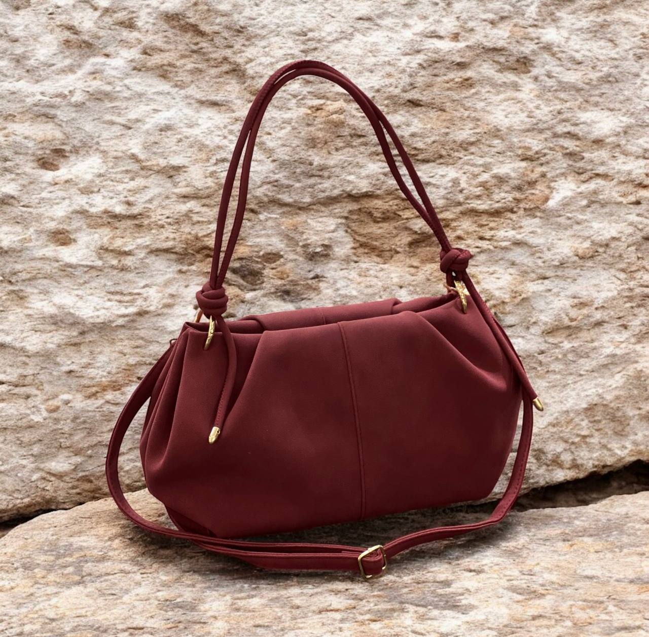 Süet kadın omuz çantası, yumuşak dokusu ve doğal görünümü ile kombinlerinize sıcak ve şık bir hava katar. Bordo tonu sayesinde hem klasik hem modern kombinlerle kolayca uyum sağlar.