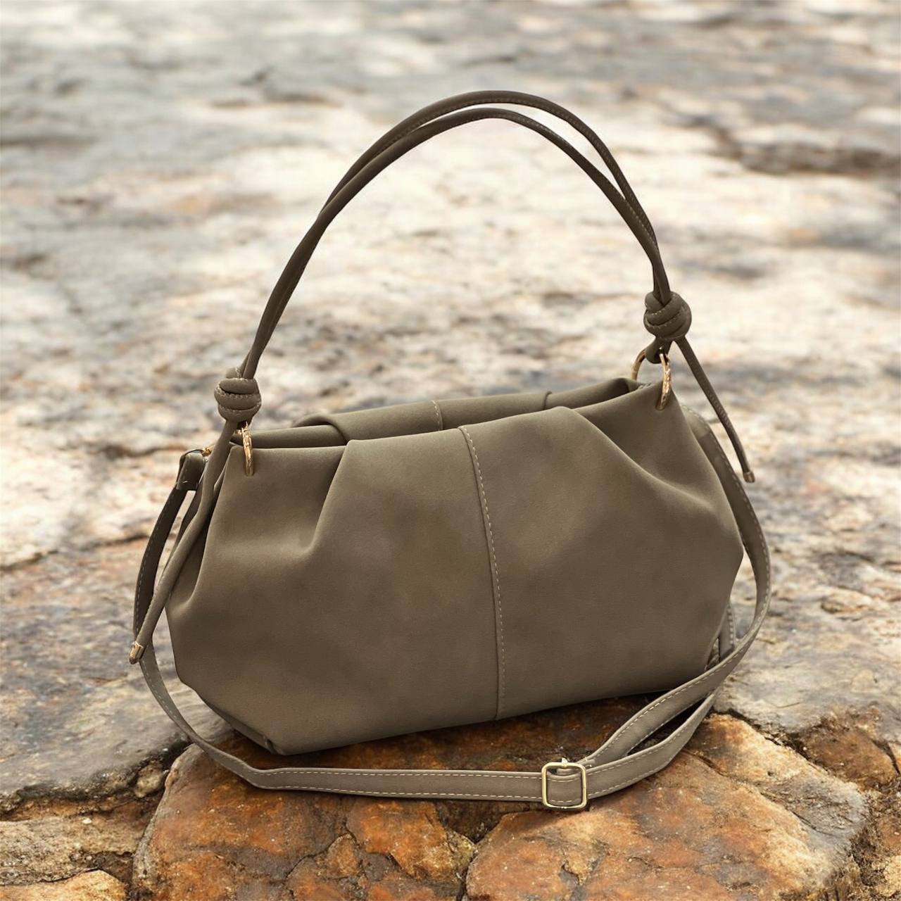 Süet kadın omuz çantası, yumuşak dokusu ve doğal görünümü ile kombinlerinize sıcak ve şık bir hava katar. Vizon tonu sayesinde hem klasik hem modern kombinlerle kolayca uyum sağlar.